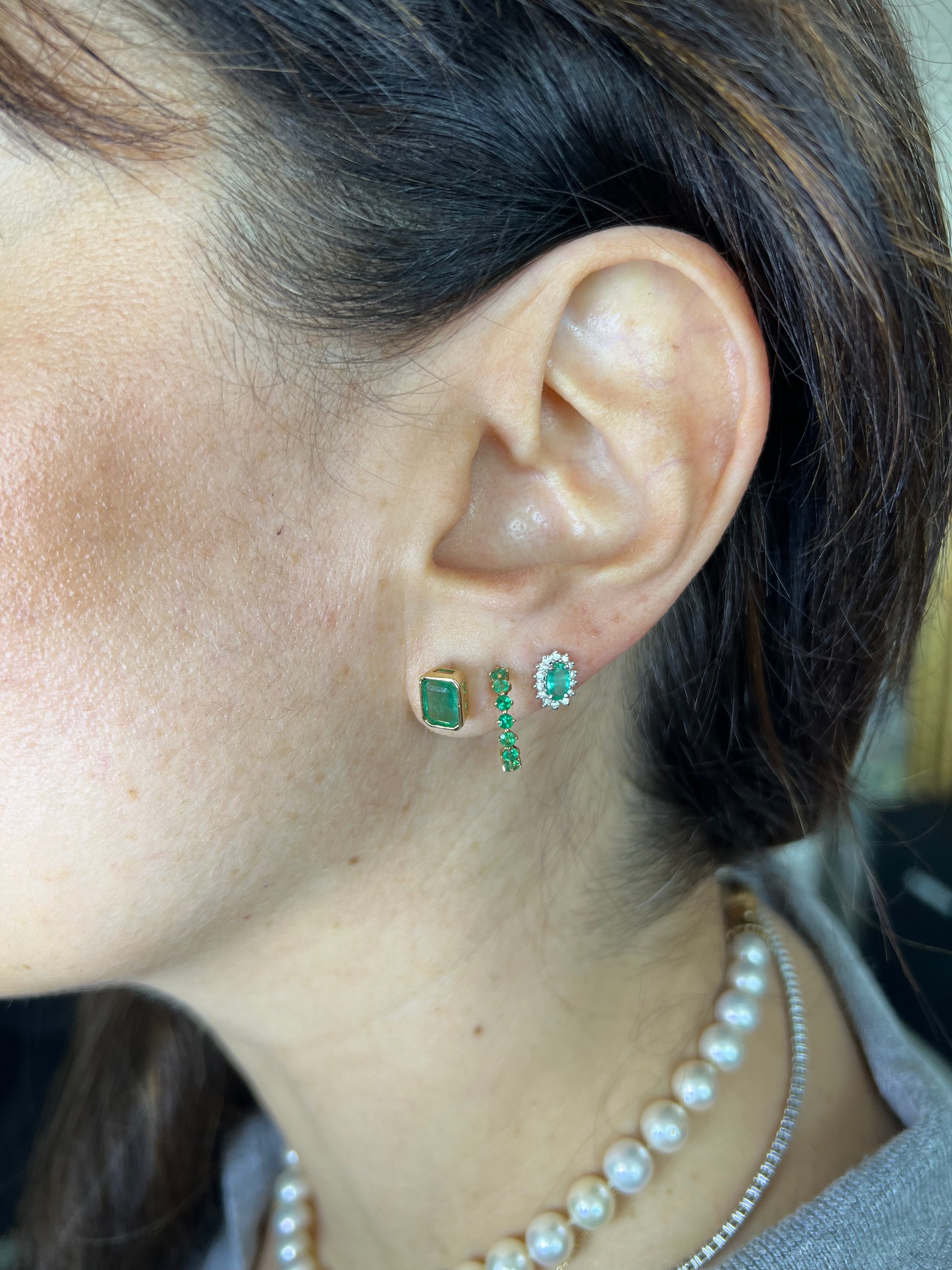 Broqueles de Esmeralda en oro Blanco 14k, con Aro de Diamantes