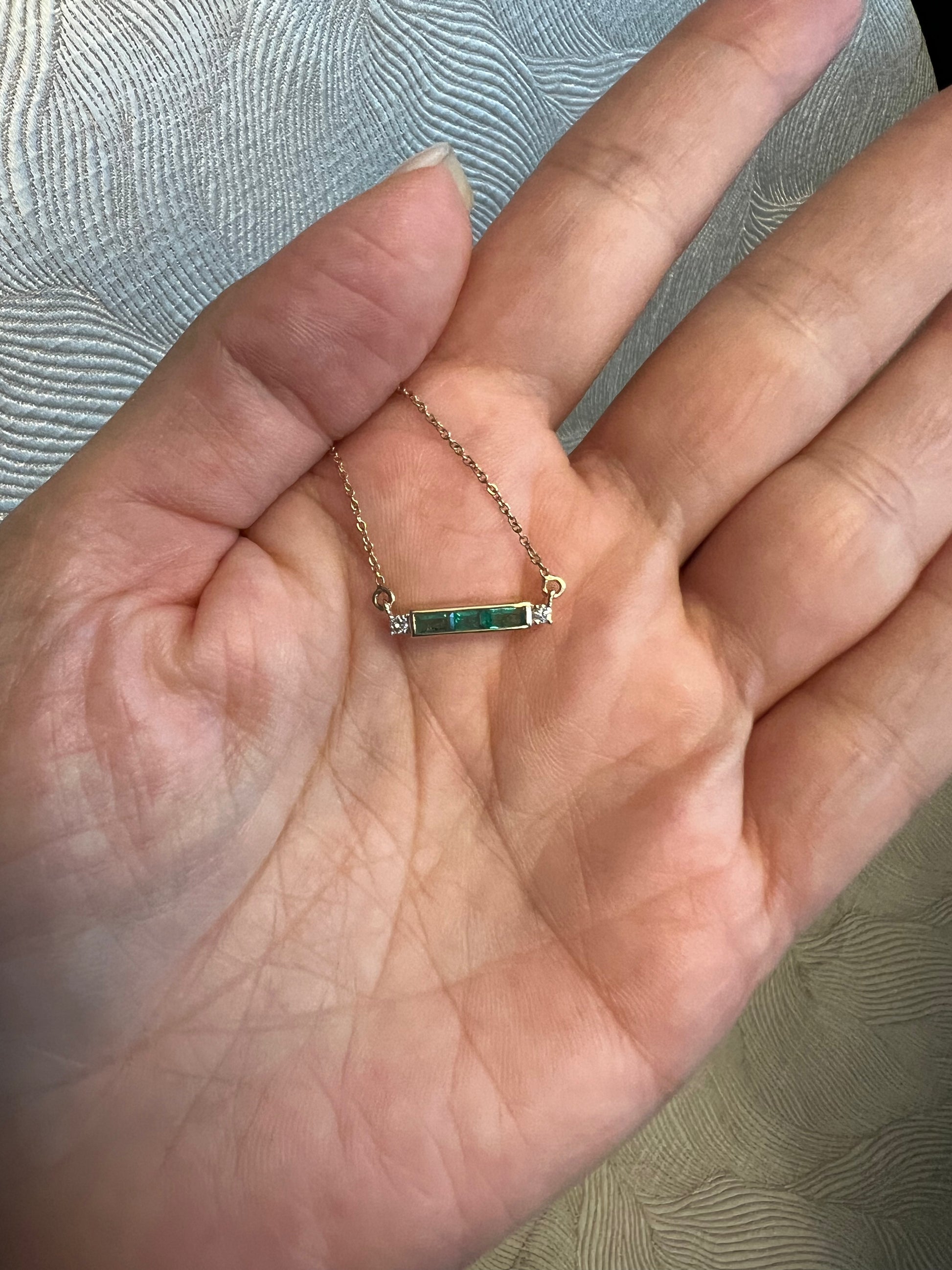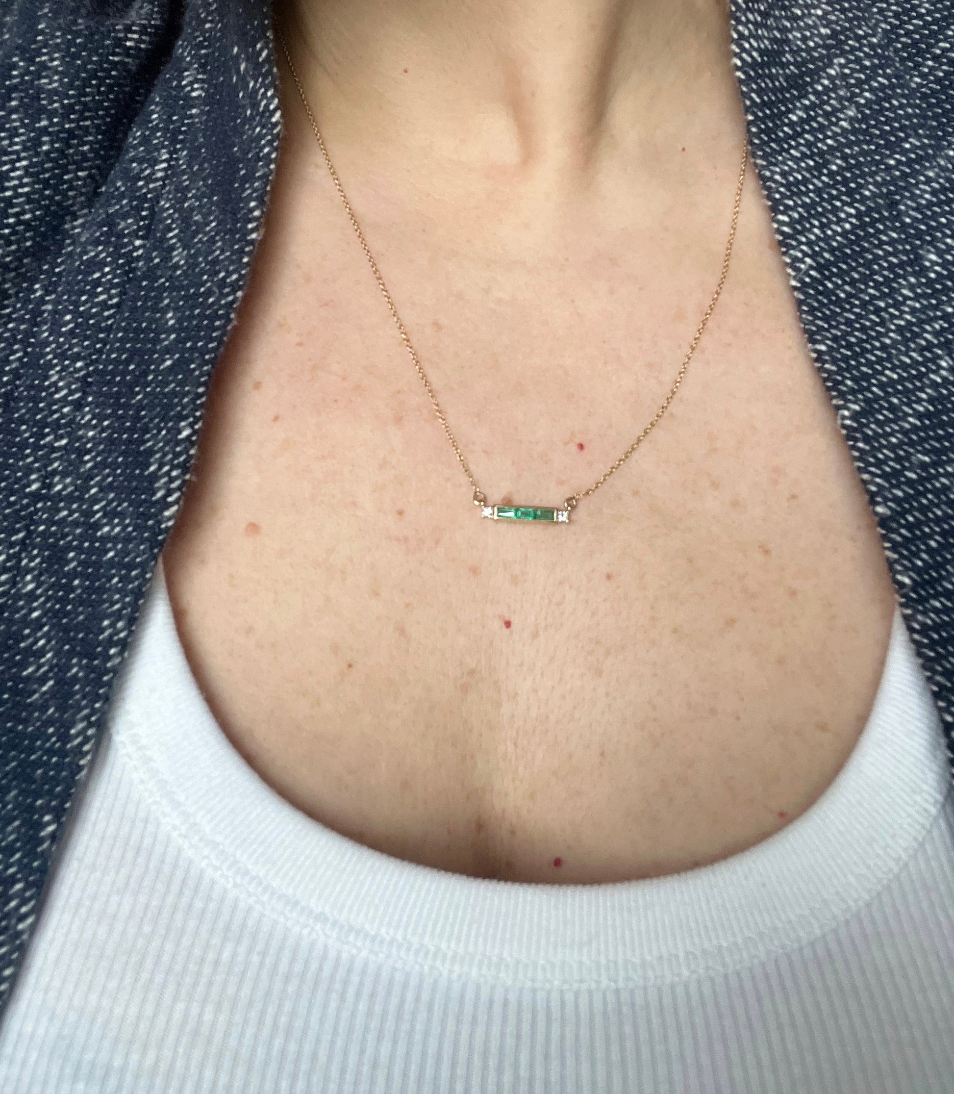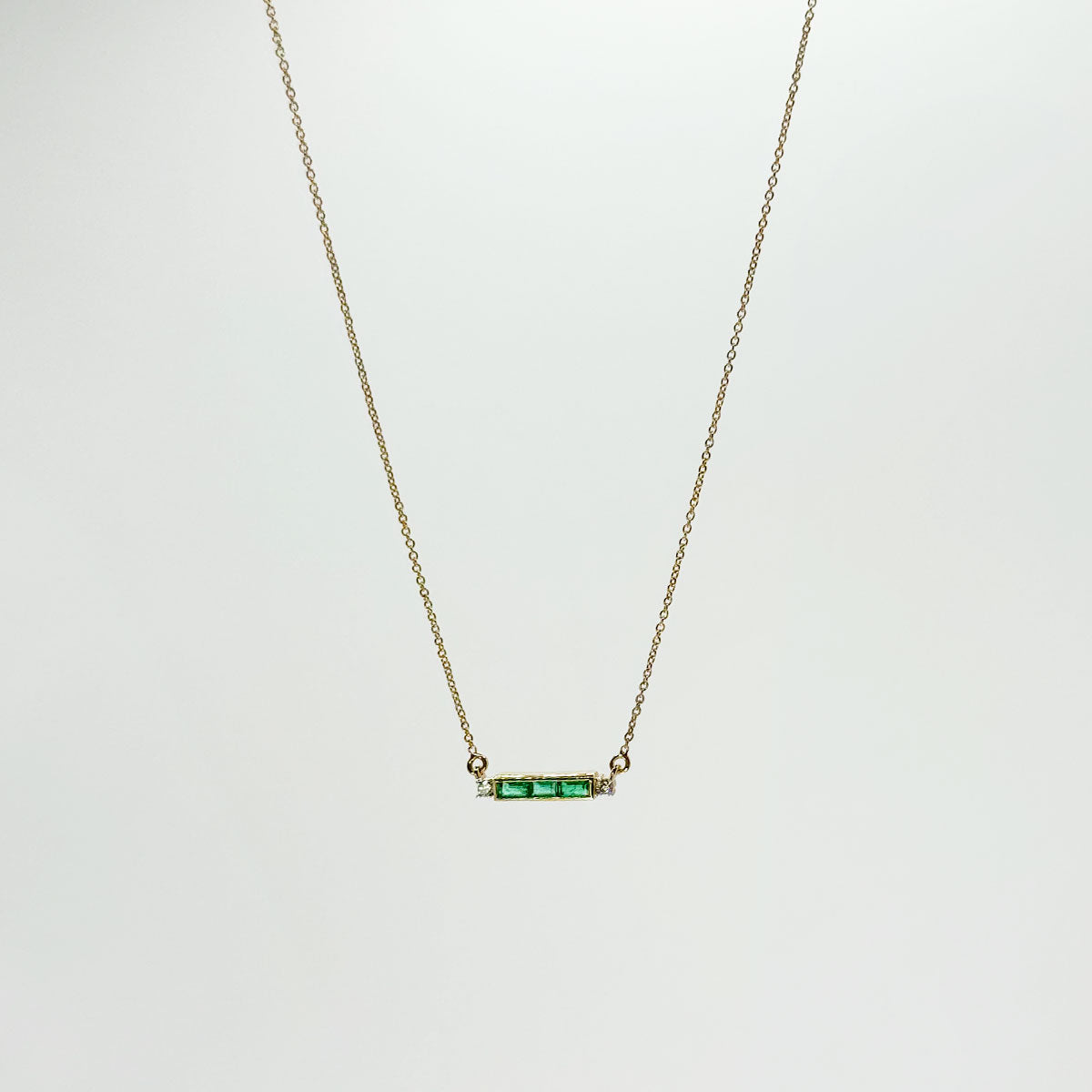 Tipo: Collar de barra con 3 esmeraldas y 2 diamantes laterales
