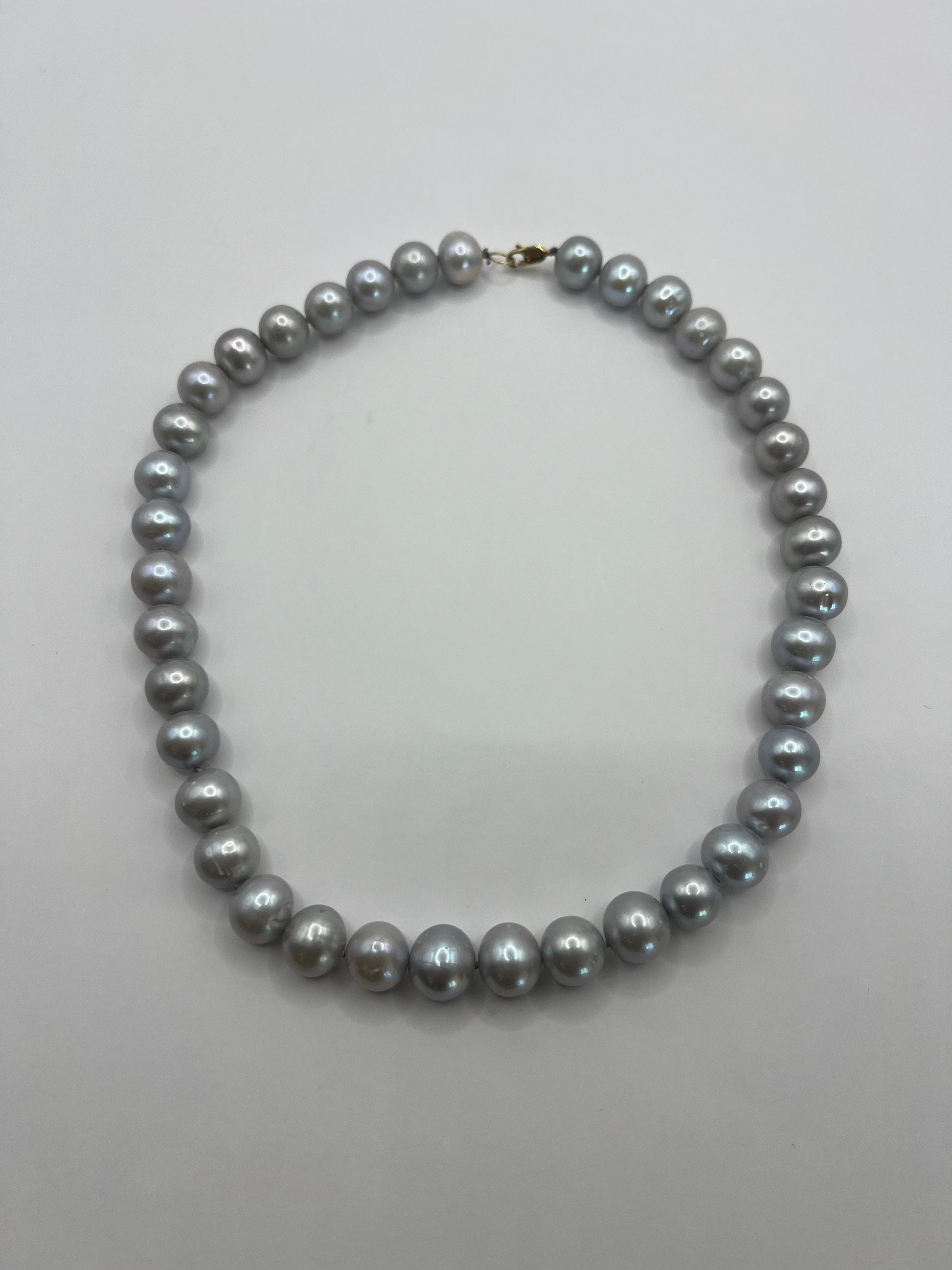 Collar de Perlas (chocker) Redondas en color Gris con broche de Oro amarillo 10k