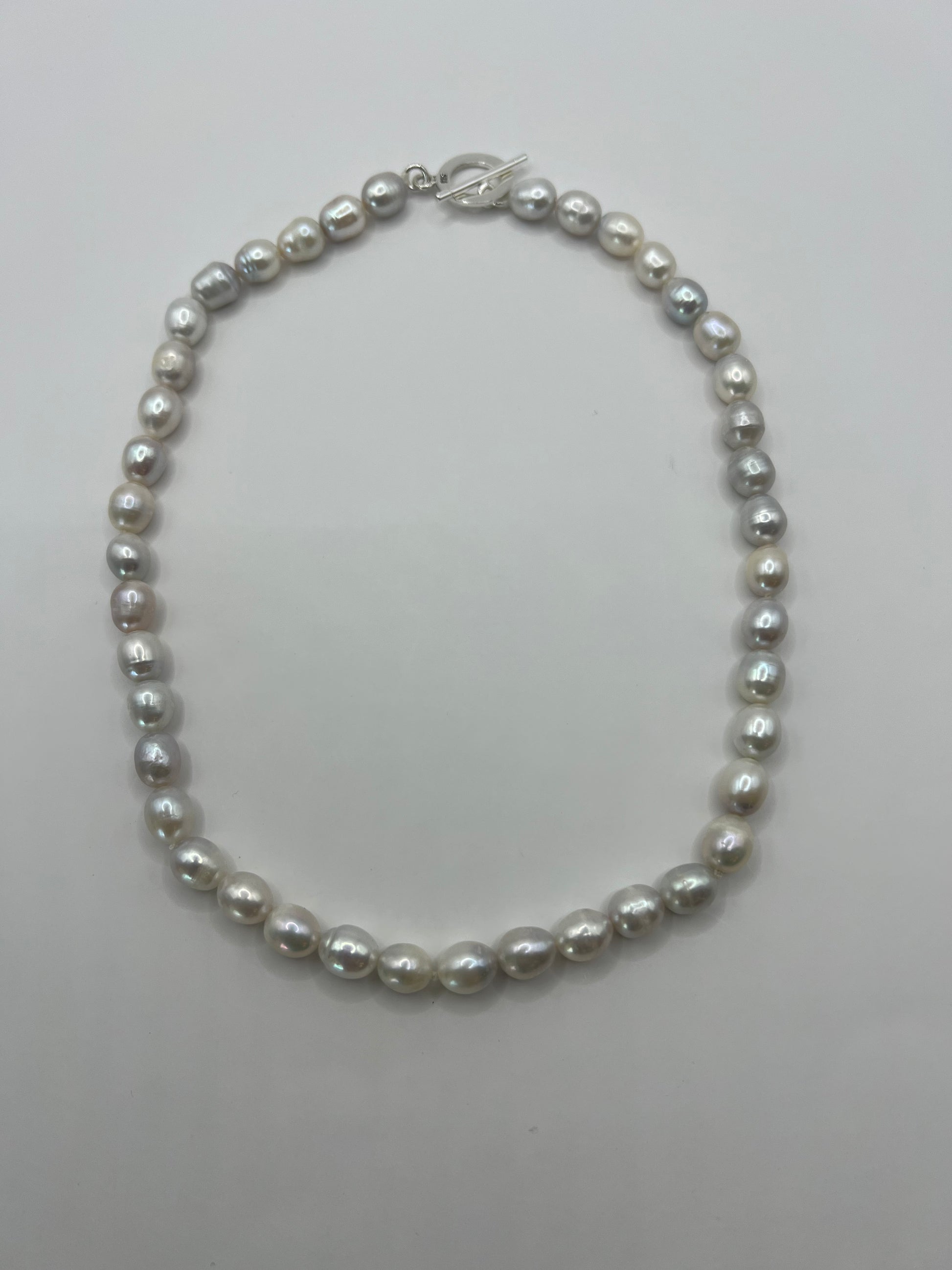 Collar de Perlas (Choker) Calabacin en color gris claro con broche de Plata