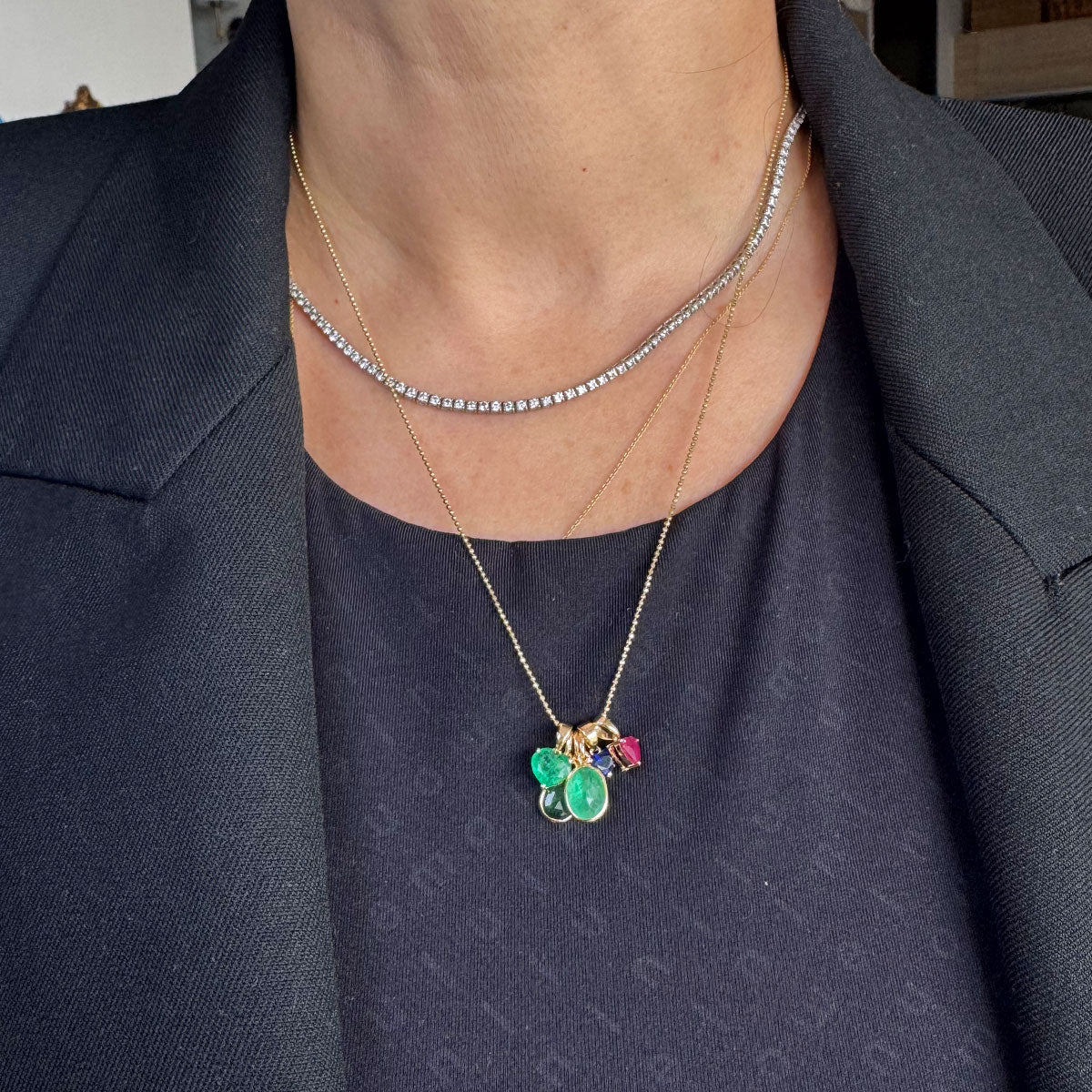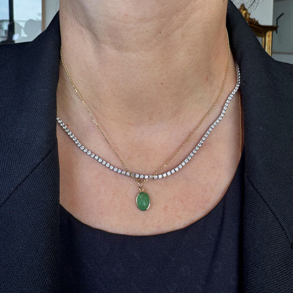 Dije de esmeralda con jardín en redondo.