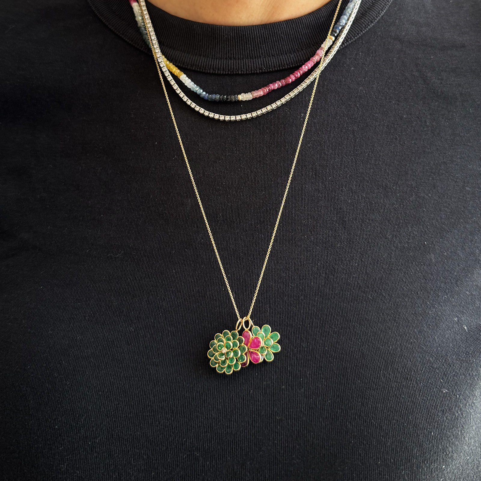 Dije flor rubíes.
