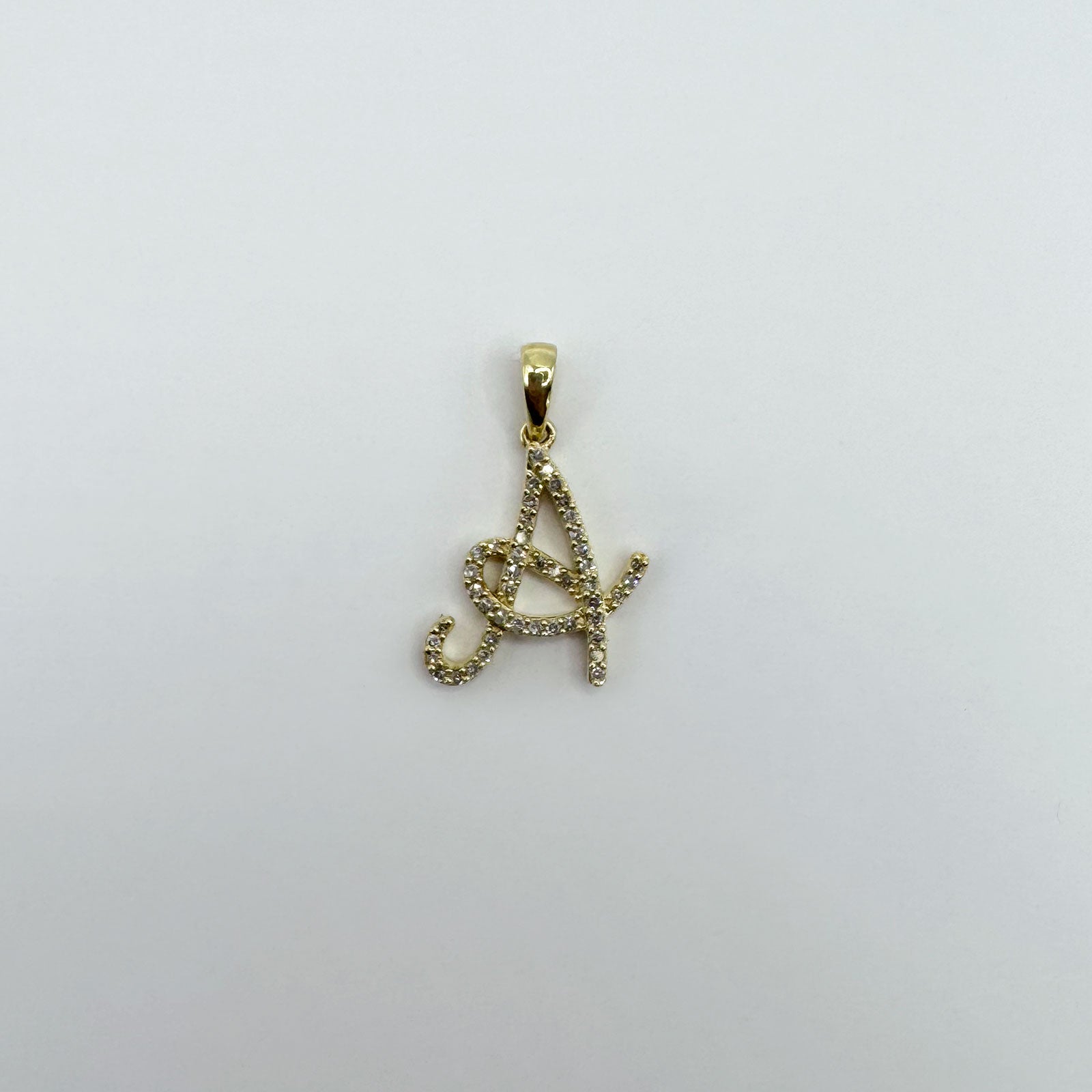 Tipo: Dije de letra "A" en oro amarillo 10k con diamantes naturales