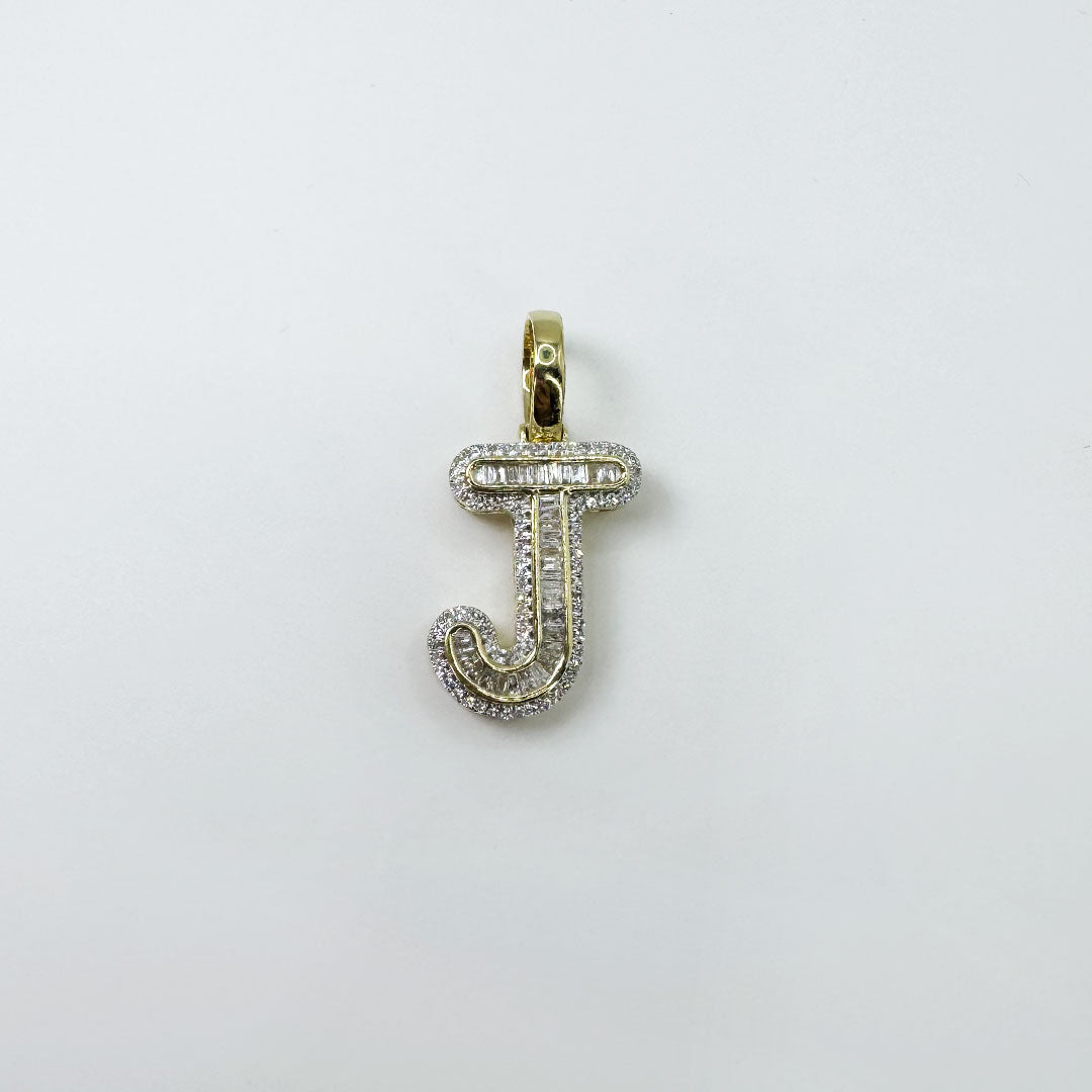 Tipo: Dije de letra "J" en oro amarillo 10k con diamantes naturales