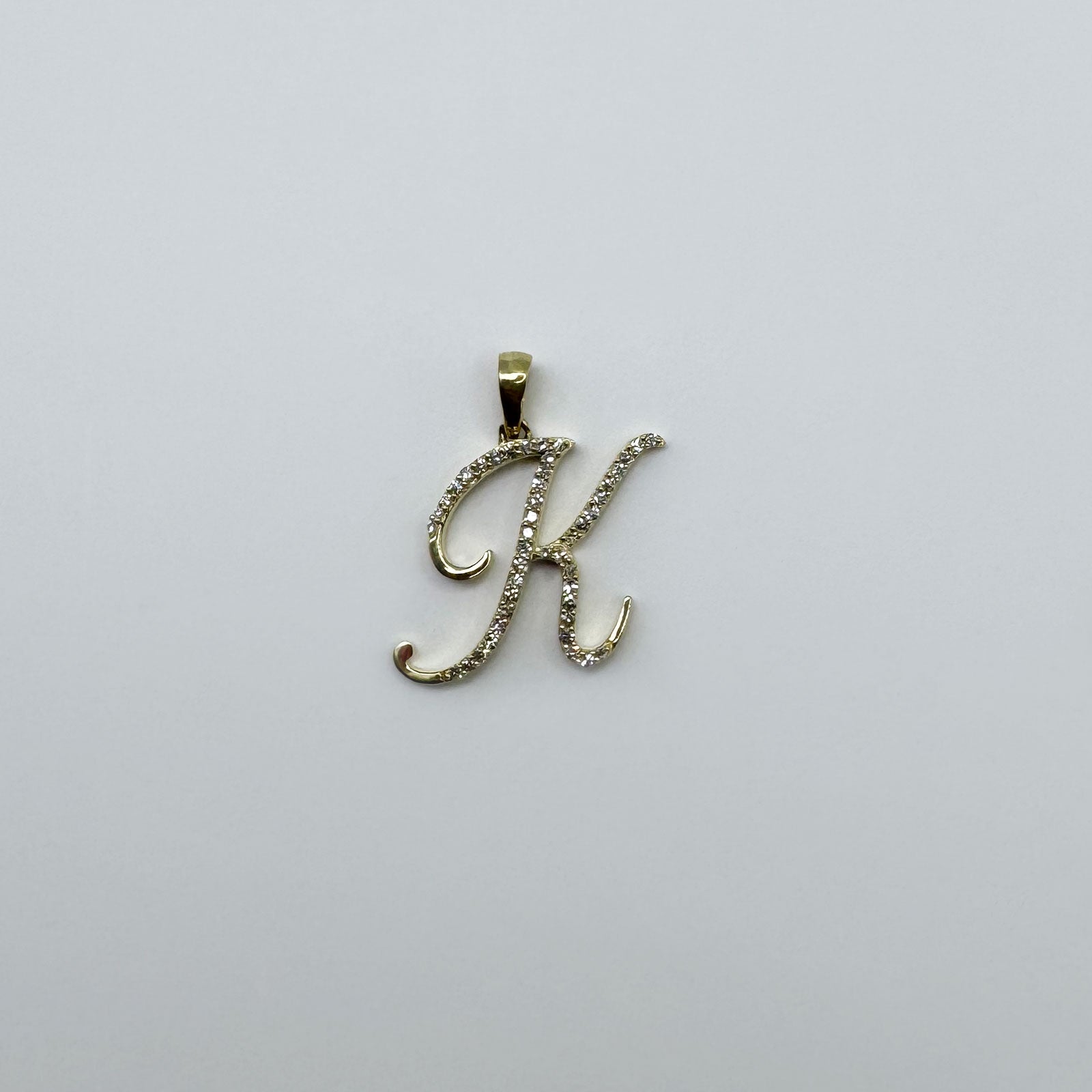 Tipo: Dije de letra "K" en oro amarillo 10k con diamantes naturales