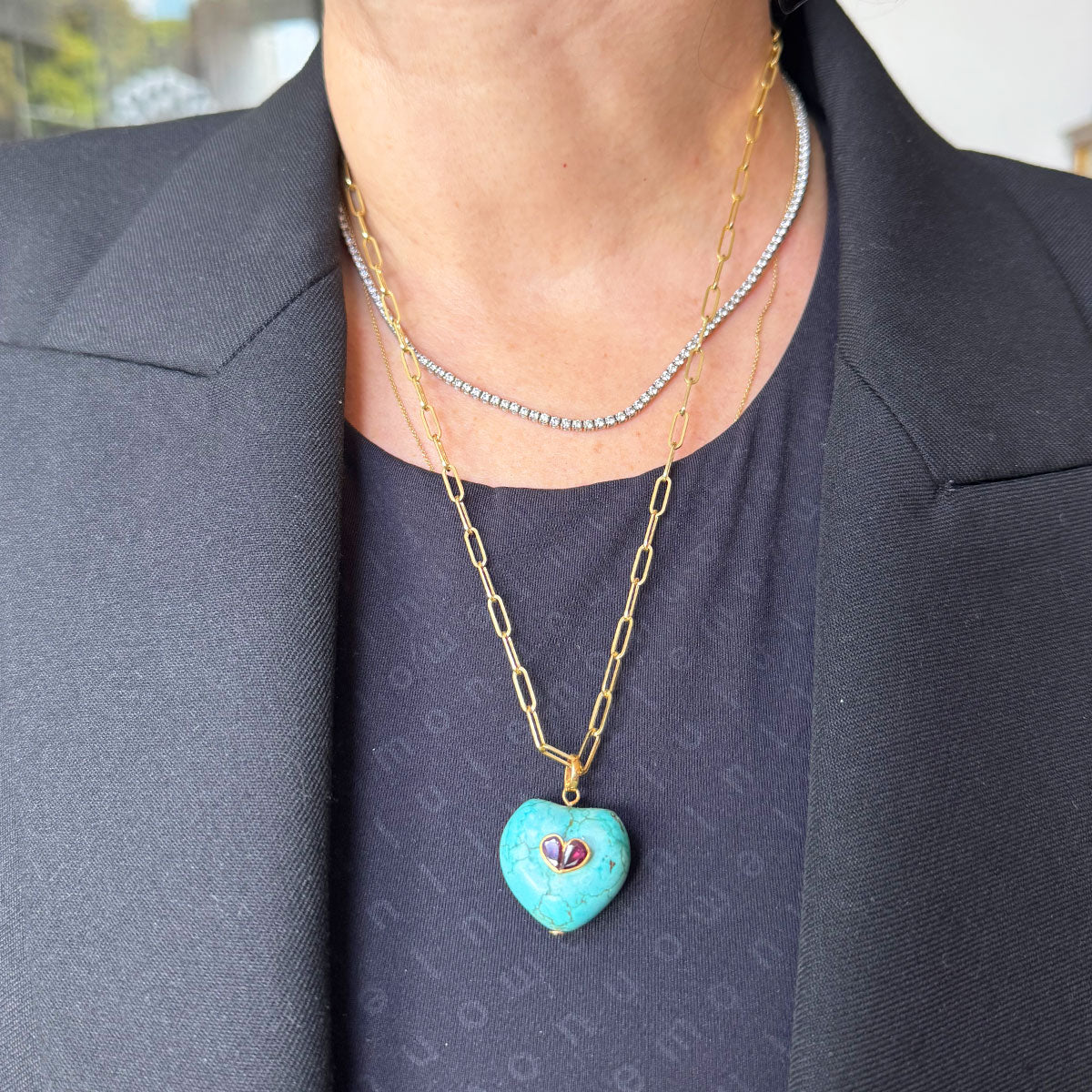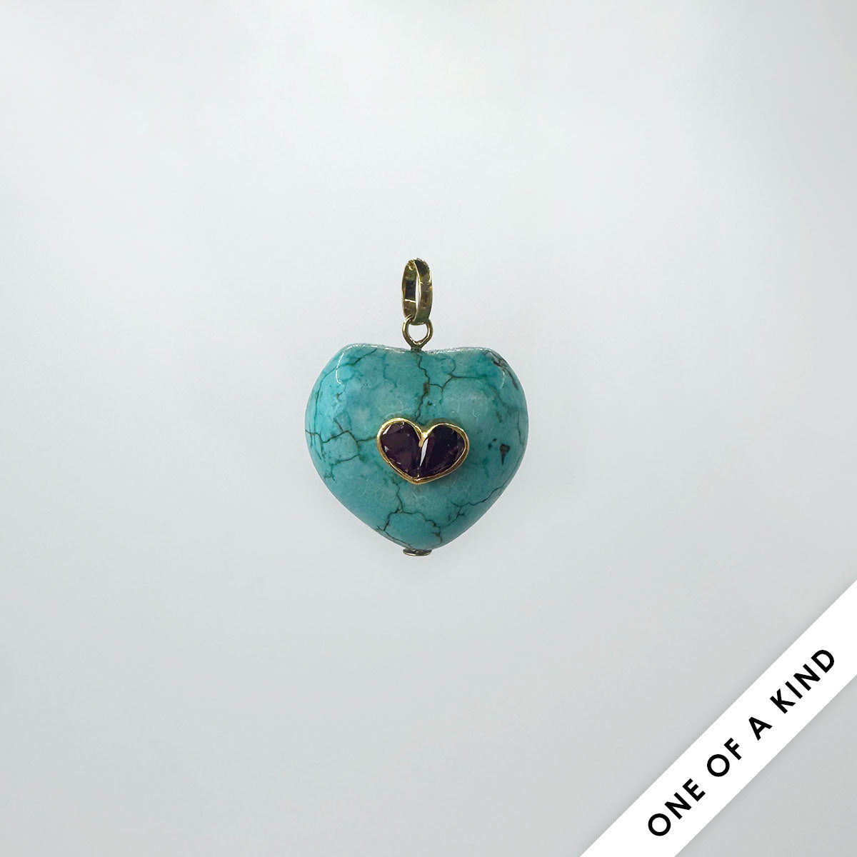 Tipo: Dije de turquesa natural con piedras preciosas (2 Rubies) y montadura en oro 14k